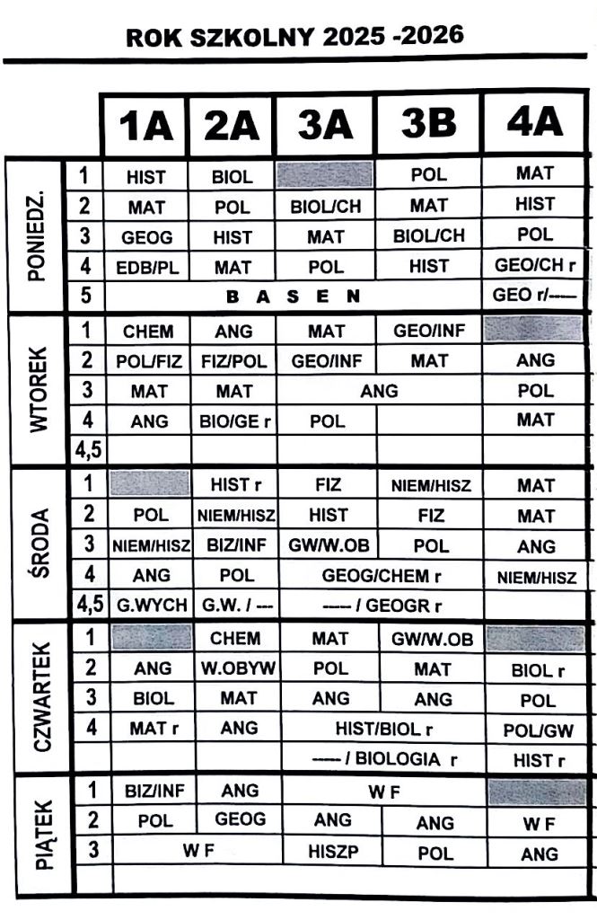 Plan lekcji jest dostępny w zakładce Liceum–>Plan lekcji