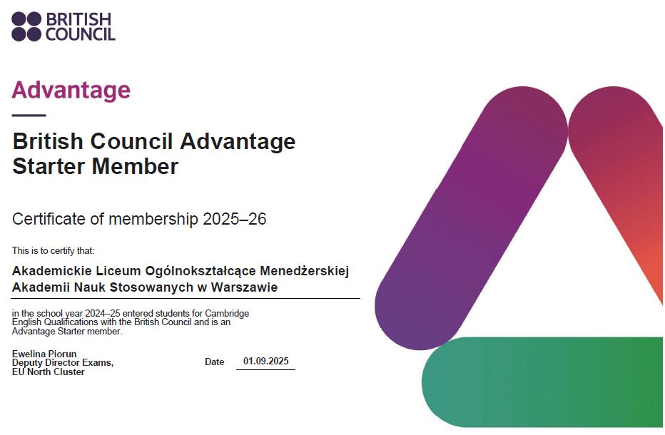Akademicka Szkoła Podstawowa i Akademickie Liceum MANS w Warszawie zostały partnerem British Council w ramach programu Addvantage.